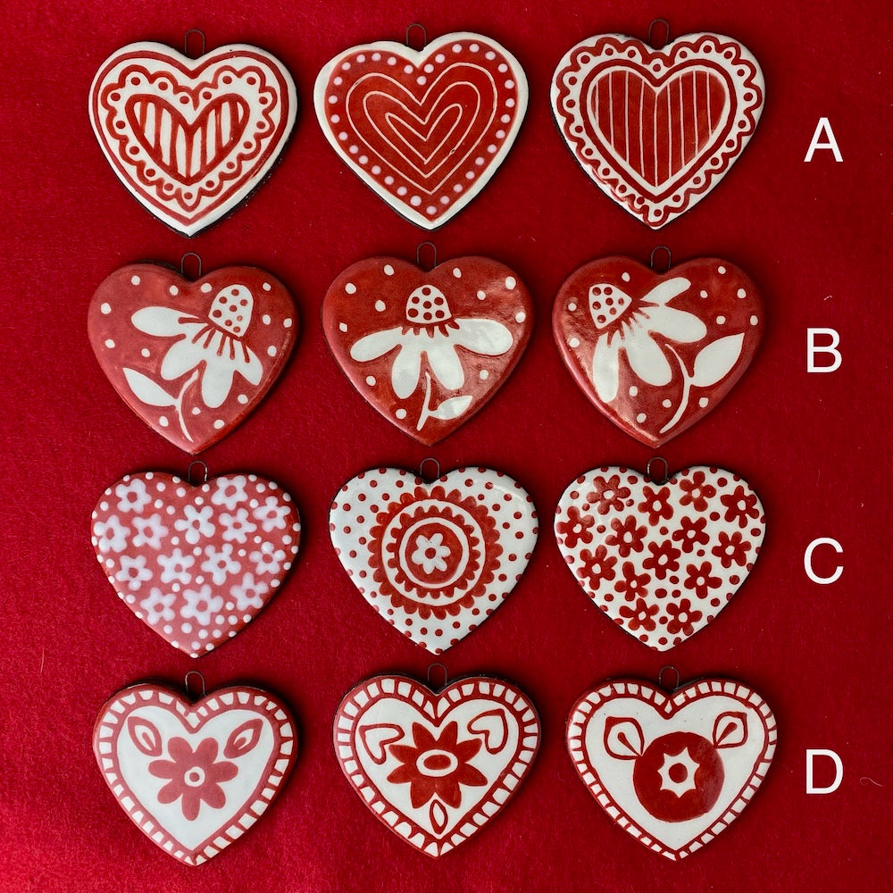 Let me reward you for your kindness and caring with some handmade goodness. Specifically, these red and white heart shaped clay ornaments decorated in coordinating sets of 3. Each set is only $1 (plus shipping) to thank you for making a $30 or more donation to support democracy, justice, human rights, free speech, __________enter YOUR favorite progressive and/or local cause. Together, let’s build community, support our neighbors and fuel hope.