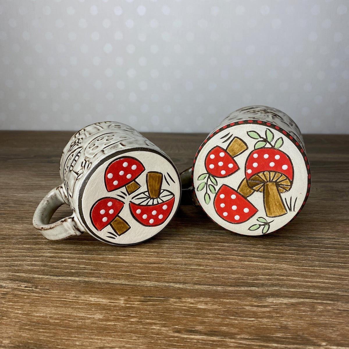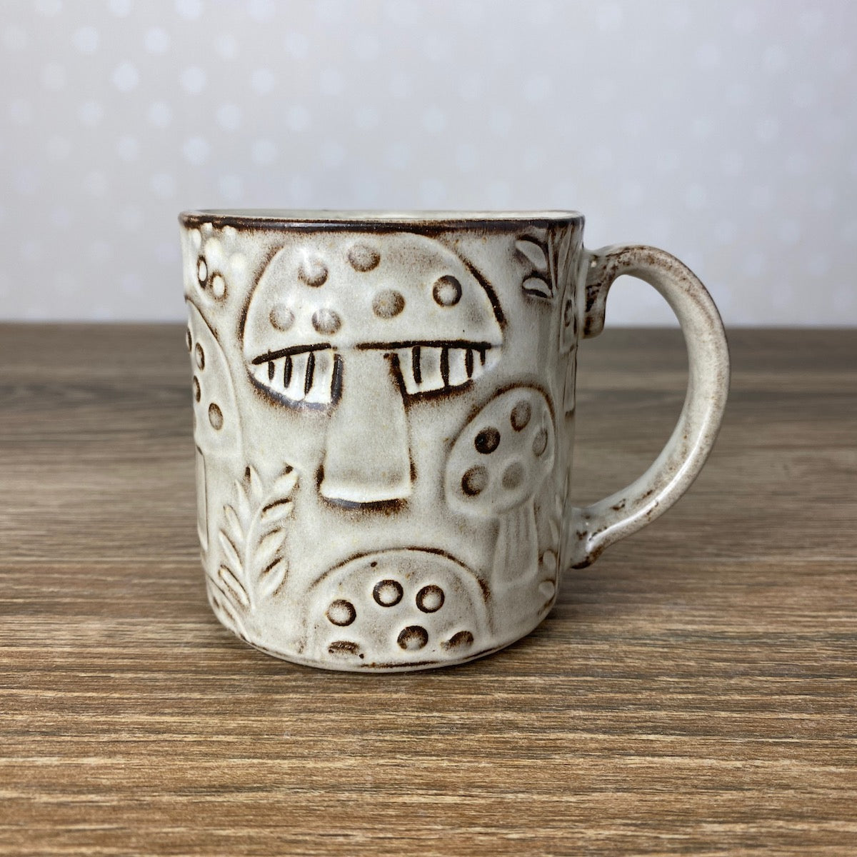 Textured Stoneware Coffee Mug with Mushrooms